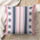 Update your indoor or outdoor spaces with this versatile pillow that features a modern pink and blue stripe design with mattress ticking details and a simple floral pattern. This design is modern and minimalistic, and it will make a great addition to an indoor space, like a living room or bedroom, or use it outside on a porch or patio. Makes a great gift for new homeowners.