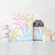 Modern Pink Blue Yellow Gold Tropical Palm Leaves Wrapping Paper