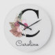 Modern pink Boho initial clock, perfect gift for Christmas, birthday or other fun celebration. Customized with boho flowers, monogrammed the letter C and a name.