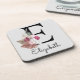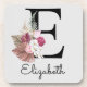 Modern pink Boho initial coaster, perfect gift for a bachelorette party or other fun girly celebration. Customized with monogrammed the letter E and a name.