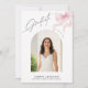 Celebrate your graduate in style with this elegant two‑sided graduation party invitation. The front features a soft pink ribbon illustration paired with graceful script lettering and a curved “Class of 2028” detail for a feminine, modern touch. Bold uppercase text highlights your graduate’s name, creating a beautiful focal point. The back of the invitation continues the clean, minimalist aesthetic with well‑organized event details, making it easy for guests to find the date, time, location, and RSVP information. A perfect blend of charm and sophistication, this design sets the tone for a memorable celebration.