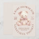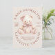 A soft cuddly pink teddy bear with delicate bows on ear and neck on a blush pink background with a modern circular text display. Easily add your own details and if you would like to edit further, change font style, color, size and placement. Welcome your baby girl with this lovely teddy bear! Make it a theme throughout your shower, on favors, decorations, supplies, and even a similar teddy bear as a gift for baby to be her pink pal as she grows.