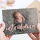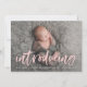 Modern Pink Brush Script Introducing Photo Birth Announcement
