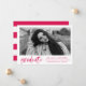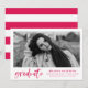 Announce your graduation with our stylish, Modern Watercolor Brush Script graduation announcements! The modern graduation announcements display the graduate's photo framed in white with "graduate" in a trendy hot pink watercolor brush script. Add the graduate's name, school, graduation year, and future plans. The announcement reverses to a hot pink and white striped background with space for additional photos and text.