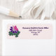 Modern Pink Butterfly Purple Flower Return Address Label