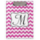 Modern Pink Glitter Chevron Zig Zag Stripe Fabric Print Pattern Monogram Initial Clip Board Personalised