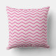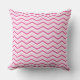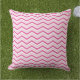 Colourful, bright, and modern chevron striped outdoor pillow in hot pink, light pink, and white.
