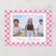Step into the holiday spirit with our trendy Pink Gingham Photo Holiday Postcard. This unique design allows you to extend your warmest holiday greetings with a fun, modern twist. The postcard features a delightful pink and white gingham pattern that perfectly complements your favourite vacation family photo and "Merry Christmas" with a modern script calligraphy.