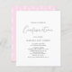 This confirmation invite is simple and delicate. Came just at the estimated time for delivery. The font and design was just what I imagined and picture displayed. The card stock is very thin, but for the price I was ok with it.