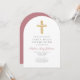 Custom Modern Pink Cross Religious Girl First Communion Arch Invitation Card.
