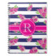 Modern Pink Floral Navy Striped Stylish Monogram Notebook