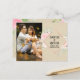 Your couple's photo is on the left front of the Save the Date postcard. Your first names, wedding date and wedding location are on the right in a pink diamond surrounded by pale pink roses. They look beautiful on a soft beige background. The back of the postcard is also beige and has a soft rose border with lots of green leaves. You can easily personalise all of the text to include your own Save the Date wedding information.