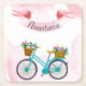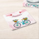 Modern Pink Flowers Bicycles Square Paper Coaster