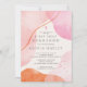 Trendy modern pink watercolor abstract shapes First Holy Communion invitation with a touch of orange.