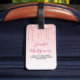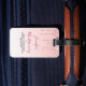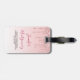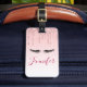 Luggage tag with a modern, trendy design. For those wish to convey an air of class and elegance. Designed with a background which has an image of sparkling, pink glitter drips. The rest of the background is a delicate pastel pink colour gradient. An illustration of a pair of black eyelashes complete the design.