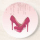 Modern Pink Glitter Drips & High Heels Coaster