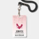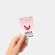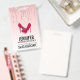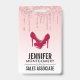 A modern, trendy design on a name tag. The background has an image of sparkling pink glitter drips, along the top. The rest of the background is a delicate pastel pink colour gradient. A pair of high heel pink stilettos add a stylish fashionable vibe. A fancy classy divider line separates your name and profession.