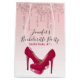 A modern, trendy design on bachelorette party gift bags. The background has an image of sparkling pink glitter drips, along the top. The rest of the background is a delicate pastel pink colour gradient. A pair of high heel pink stilettos below the personalised text.