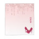 A modern, trendy design on a notepad. The background has an image of sparkling pink glitter drips, along the top. The rest of the background is a delicate pastel pink colour gradient. A pair of high heel pink stilettos add a stylish fashionable vibe.