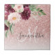 Modern Pink Glitter & Flower Sparkle With Name Ceramic Tile