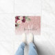 Modern Pink Glitter & Flower Sparkle With Name Doormat