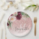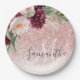 Modern Pink Glitter & Flower Sparkle With Name Paper Plate