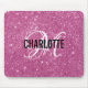 Modern design with a pink glitter background, an elegant hand lettered white script monogram with a black name. Personalise with your name and initial.