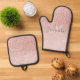 Modern Pink Glitter Sparkles Personalised Name Oven Mitt & Pot Holder Set