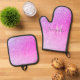 Modern Pink Glitter Sparkles Personalised Name Oven Mitt & Pot Holder Set
