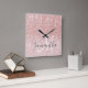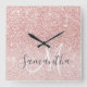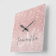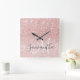 Modern Pink Glitter Sparkles Personalised Name Square Wall Clock