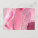 The left-hand edge of this elegant modern wedding details enclosure card features a pink watercolor agate border trimmed with faux gold glitter. The title appears in handwriting script, with customisable text below in charcoal grey copperplate font on a white background. The reverse side features a matching pink and gold agate design.