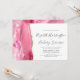 The left-hand edge of this elegant modern wedding invitation features a pink watercolor agate border trimmed with faux gold glitter. The customisable text combines handwriting, copperplate and italic fonts in charcoal grey on a white background. The reverse side features a matching pink and gold agate design.