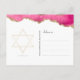 Pink and faux gold glitter agate with a gold Star of David decorates this elegant watercolor Bat Mitzvah invitation postcard. This design features pink marble agate accented with faux gold glitter. Your celebration details may be personalised in a modern gaux gold script calligraphy. The back of the post card has a matching agate border with star of david. Designed by Susan Coffey.