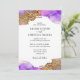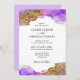 The Modern Pink Gold Purple Ink Wedding Invitation is a luxurious, eye-catching choice for contemporary weddings. This invitation combines a blend of soft pink, deep purple, and metallic gold ink accents, with artistic ink splashes that create a sophisticated yet creative aesthetic. The colour palette offers a striking contrast, highlighting elegant typography and leaving a lasting impression. Ideal for a modern or upscale wedding theme, this invitation is designed to captivate guests with its bold, artistic style and rich colours. Perfect for couples looking to add a touch of glamour and modern flair to their wedding stationery. The size is 5 x 7 inch.