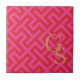 Chic bold modern elegant stylish decorative greek key red and pink geometric abstract pattern design, the cute contemporary modern Greek key abstract geometric pattern in red and pink give this bold clean design a contemporary and classic look. Cool unique gifts for her. Custom the personalised monogram with your own initials or name, you can also click "customise it!" button under product photo to edit the colour and the font of the initials!