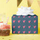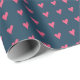 Modern Pink Heart Pattern on Dark Blue Wrapping Paper