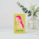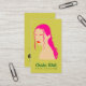 The card features a flat design illustration of a stylish woman with long, wavy pink hair, defined brows, and coral red lips — a bold yet elegant combination that captures attention instantly. The clean lines, subtle retro-boho vibe, and modern color palette create a distinctive look that perfectly fits the beauty and fashion world.