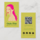 Modern Pink Lime Green Hair Styling Flat Design QR Business Card