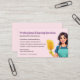 Promote your house cleaning or maid service with this modern pink business card featuring a friendly cleaning lady illustration. Perfect for professional janitorial or residential cleaners. Editable template makes it easy to personalize your name, contact info, and company branding.