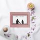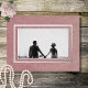This beautiful save the date foil postcard design features a soft dusty pink marbled background with your photo in the centre. The foil text appears on top of your photo, with a floating white text box surrounded by two foil frames. Created by Simply Farmhouse Press.