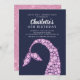 Modern pink rhinestone crystals mermaid tail girls birthday party invitation set on a midnight blue background with a coordinating pink glitter back for an extra special touch.