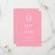 Announce your engagement with these minimal wedding save the date invitations. It features a mix of classic and script typography in white over a vibrant pink background With a monogram crest at the top. Use the template fields to personalise with your name and wedding date. Even customise the colours to suit your desired wedding theme. The back features a custom QR code. Simple add in your wedding website to the templet field and it will update. Choose from a variety of quality card stocks. My favourite for this is pearl shimmer. Mix and match this stationery with many of my designs to create your customised wedding theme. A classy and tropical design for sustainable weddings and engagement announcements. To see the matching wedding stationery suite visit www.zazzle.com/dotellabelle