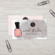 Modern editable pink nail polish bottle illustration with gold glitter heart and abstract pink watercolor brushstroke and an elegant script font. Add your social media and logo.