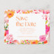 Modern Pink Orange Flowers Simple Wedding Save the Date QR Code Postcard