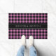 Modern Pink Plaid Custom Name Doormat