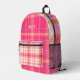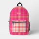 Modern pink plaid design with name printed backpack