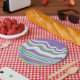 Add a touch of colour to your special events with this modern pink, white, purple and teal wavy pattern design paper plate. Great for Birthday parties, Baby Shower, picnic.