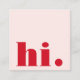Stand out with this modern square business card featuring bold typography and a striking pink and red palette. The oversized “hi.” greeting adds personality, while the clean back layout makes it ideal for graphic designers, creative professionals, or anyone who loves a minimalist, high-impact aesthetic. Fully customisable with your contact info.