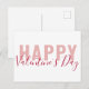 Modern Pink Red Script Happy Valentine`s Day Postcard. Modern and trendy typography and script.