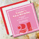 Modern Pink Red Retro 21st Birthday Square Invitation